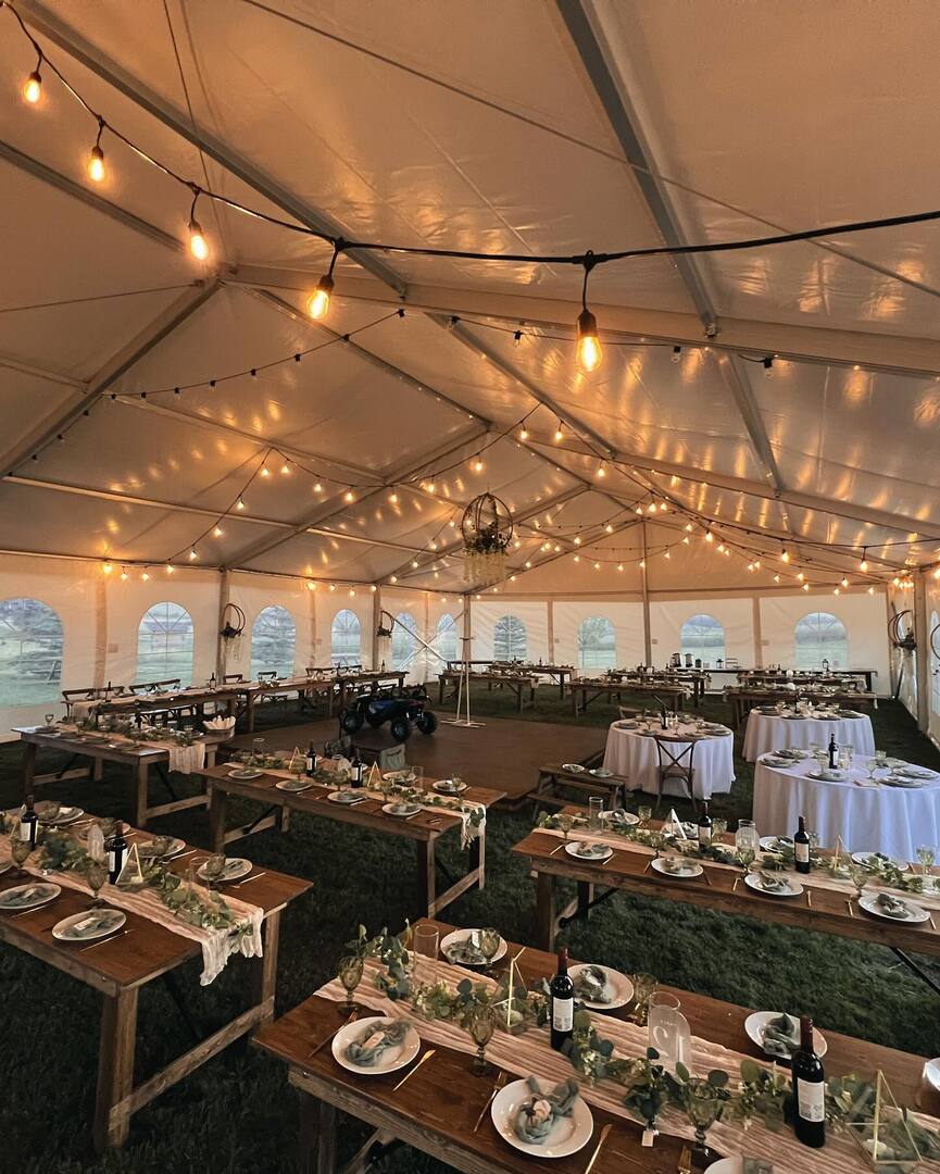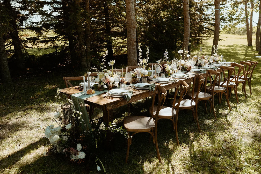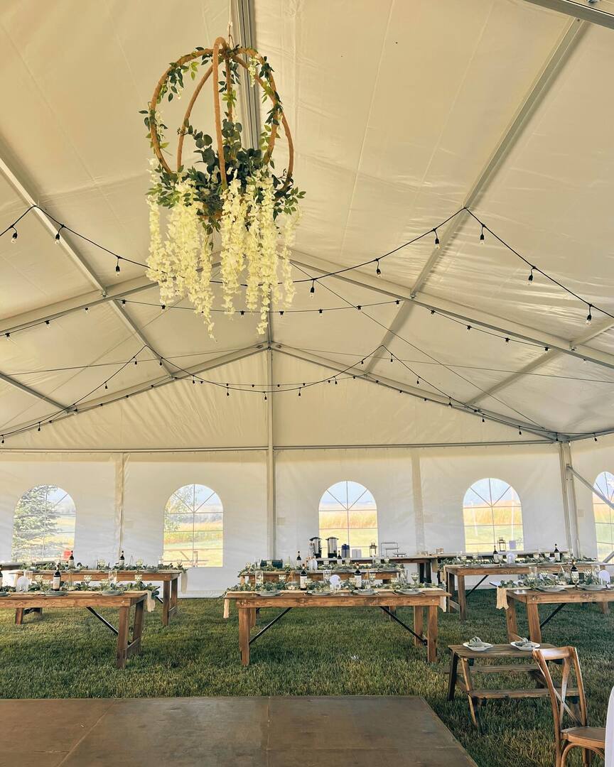 Dreamers Farm Gatherings is an outdoor wedding venue and event venue located in Rocky View County, just north of Calgary. Dreamers Farm boasts rolling hills and colorful countryside views, an elegant and spacious reception tent, forest wedding ceremony or mountain view wedding ceremony options, a delightful bridal suite, and a cozy fire pit, all providing the perfect setting for your celebration. We have carefully selected and created all of our spaces, furniture, and amenities to provide a romantic, stylish, and comfortable tented wedding experience at an affordable price.