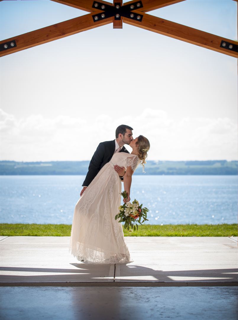 My son got married in Colorado and not many family and friends from this area could attend the wedding. So we secured the date with Seneca Lake Resorts and set the NY party in motion. This is a beautiful venue with the best view of Seneca Lake, especially at sunset. There is ample space with the covered pavilion that has large doors that open/close to keep it warmer or cooler. There is an adjoining tent, an open area with picnic tables and a green area for those cornhole competitions and other yard games! There is an inside fireplace, kitchen, bar area and nice restrooms. The farmhouse tables and chairs were sturdy and comfortable. The staff was extremely helpful and had a positive spirit. The only suggestions I would have is to install a sound system and we struggled with getting our photos to display on the big TV screen.
