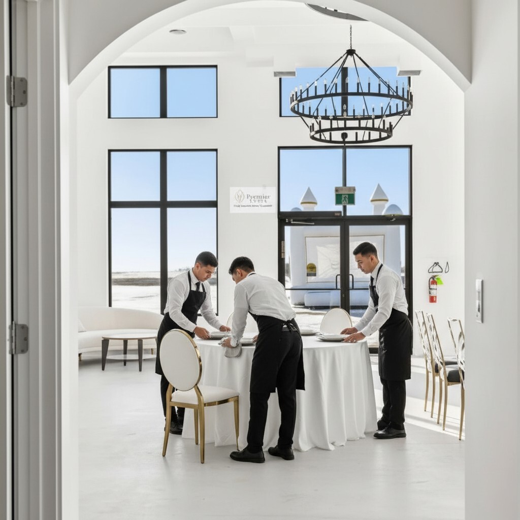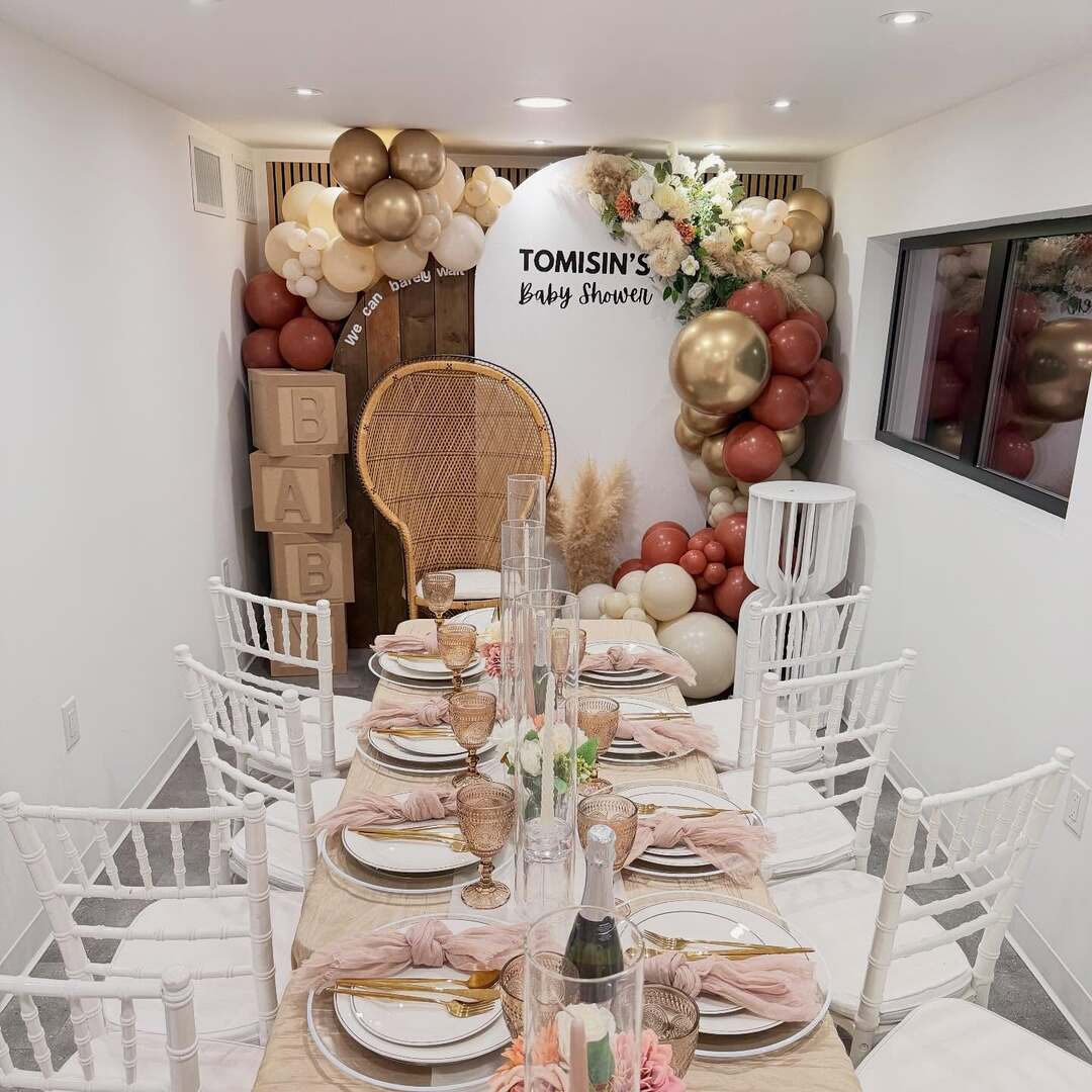 From intimate gatherings to grand celebrations, we provide everything you need. Our sophisticated venue accommodates up to 150 guests, while our curated rental collection includes elegant dinnerware, luxury furniture, and premium inflatables. Every package includes professional setup and teardown, so you can focus on what matters—celebrating.