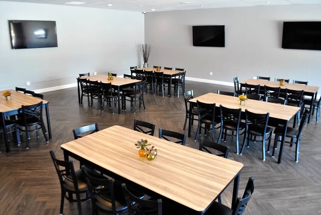 The Meeting Point is a new versatile, self-service event space, that does not require food or beverage minimums! Guests are provided a lockbox code prior to event and have full private access to the space for the duration of event. The space features state-of-the-art technology for video, photos and sound system, large catering prep kitchen (no ovens) included in your rental. Beautifully furnished, the space offers seating for up to 62 guests as part of the base rental price starting $59 weekday (Mon - Thurs) / and $89 weekend (Fri-Sun)), which includes 48 chairs, 9 six-foot tables, high-top table seating 8, plus the couch/lounge chairs seating 8. Extra chairs and tables are available and can be provided for an additional rental fee. Full day rentals (7 am to 10 pm) are discounted.