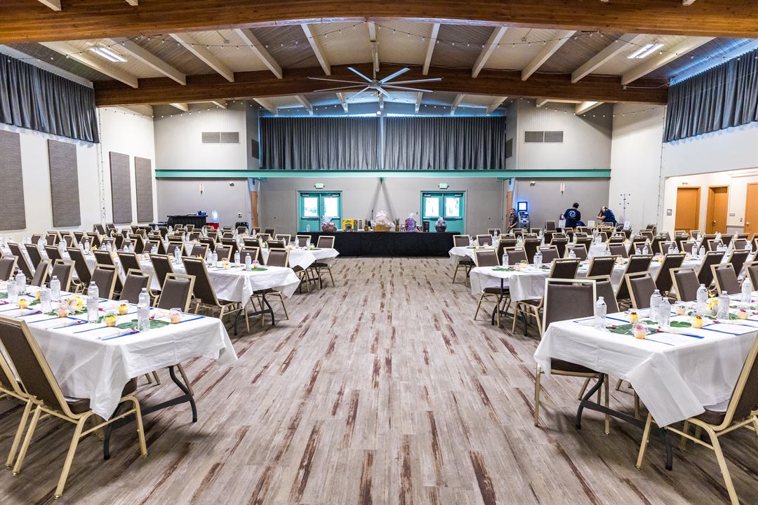 55 Sprawling acres with completely unique venue rentals. Book individually or rent the whole campus. Indoor space includes the Roebbelen Center, 160,000 square feet of event space, state of the art multiuse facility, 110,000 sq. ft. of open space, 10,000 square foot Atrium with nine screen video wall, build in projectors and video screens. 35 foot ceilings capable of hosting up to 6,000. Jones Hall 10.893 square feet, seats up to 750 banquet & 1200 theater style. The ceilings are high with gorgeous wood beams and elegant painted concrete flooring. Garden Room is a small space that is connected to Jones and can be rented separately. The well lit by natural lighted space is ideal for smaller meetings and events up to 100 Banquet seating and 290 assembly seating. Glass windows are 2 walls with coverings that opens up to a lighted patio with concrete space and overhead lights ideal for a VIP function. Johnson Hall is 5,450 that seats up to 420 banquet style and 600 theater, built in stage with top notch audio and video capabilities. Open ceiling with wood beams, oversized ceiling fans and a catering kitchen. Outdoor space at the Attaway Pavilion is ideal for outdoor concerts, dining, parties and trade shows. It is 4200 square feet with 700 sq. ft of stage. Modern Cover for weather protection, iced cold drinks hut and access to Jones Hall.