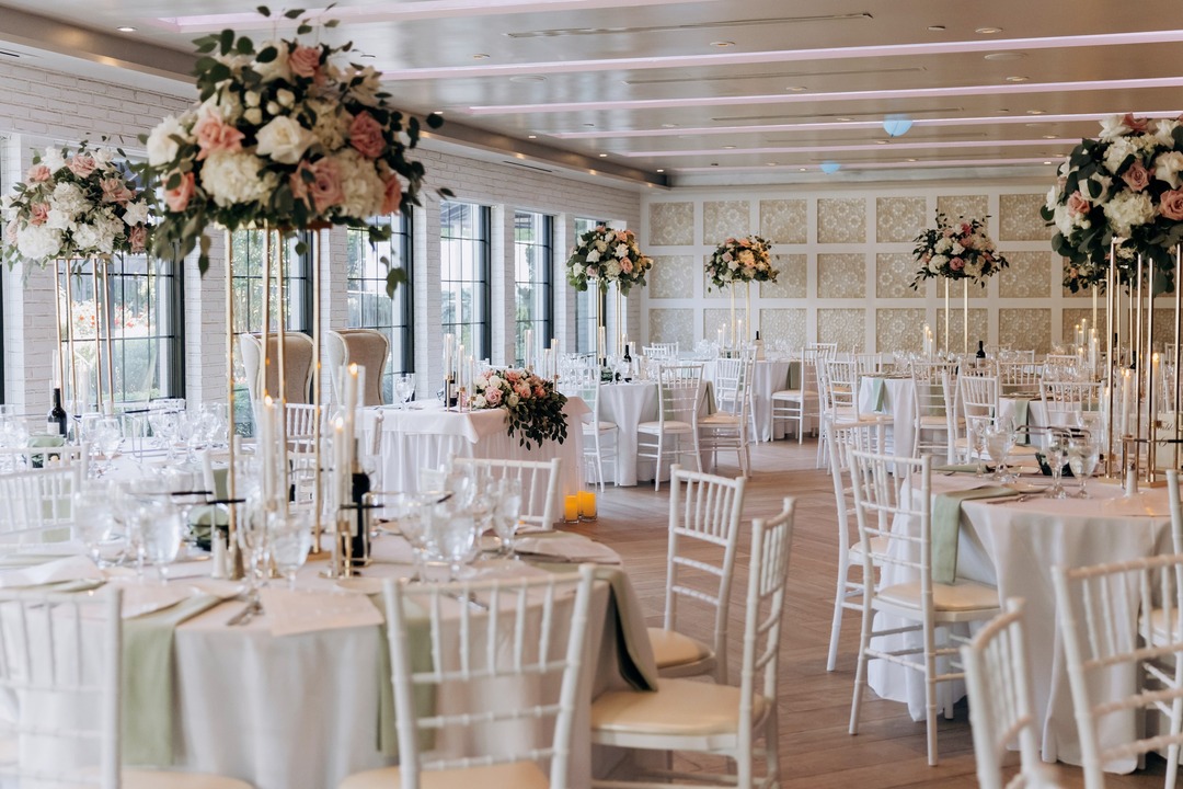 The location is what sealed the deal for us, situated on Roslyn Harbor in Glenwood Landing, NY with an outdoor patio and garden that overlooks the water, the scenery is majestic year-round. Flowers are in full bloom throughout the spring and summer, but our winter wonderland wedding was equally beautiful. The Swan Club offers a number of rooms, with enough options to meet your needs without exceeding your budget.