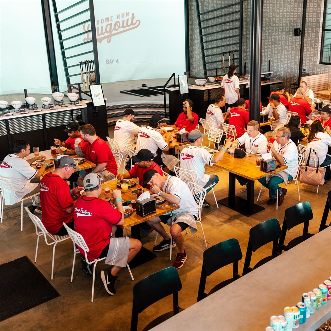 Welcome to Home Run Dugout, where left field is home! Our venue offers something for all six senses, making it the perfect place to host your next birthday party. At the heart of the Home Run Dugout experience are our 12 simulated Batting Bays™, where people of all skill levels and ages can feel the magic and rush that comes from hitting a home run in their favorite big-league ballpark. Our patented-technology delivers a soft-toss “meatball” right over home plate, making it easy and fun for everyone to participate.
