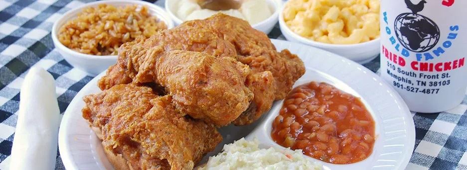 Gus's World-Famous Fried Chicken is a full-service restaurant that also provides catering services. We serve made to order, hand-battered fried chicken. Not to be confused with Nashville hot chicken; we serve southern spicy fried chicken. We make all our southern sides in-house daily; from shredding fresh cabbage for our coleslaw to sauteing our special blend of peppers for our baked beans. Most of our side dishes tend to be on the sweeter side to pair perfectly with our chicken. Finish up with one of our simple southern pecan, chess, sweet potato, or chocolate chess pies baked daily. Gus's is the current reigning and 2X champion of the National Fried Chicken Festival. Travel Channel ranked Gus's as the 12th Tastiest Restaurant in America to Chow Down, and GQ Magazine believes Gus's is one of the top 10 restaurants in the world worth flying to for a meal.