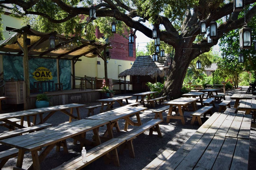 The Colonial Oak Music Park is a most enchanting St. Augustine setting for weddings, corporate events and other private parties. A regular host to community and private gatherings — The Oak features an amphitheater under St. Augustine’s second oldest sweeping live oak tree with enough family-style table seating for up to 175 guests. Our Oak space also features a full bar, and many different catered menu options from our on-site chef to please any crowd – we enjoy tailoring custom events to your needs!