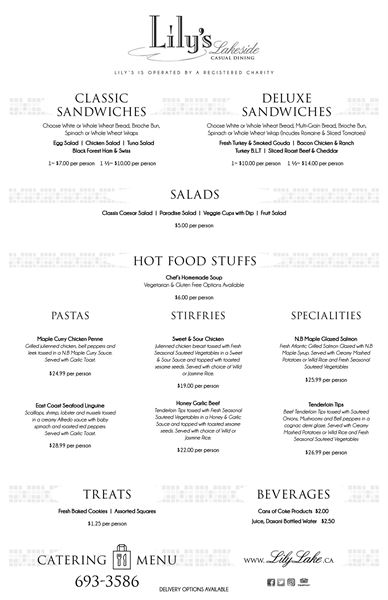 The dedicated culinary team will prepare delicious, fresh, local meals from scratch. The Pavilion has free parking, is located within 10 minutes of all major hotels, is a proud partner with Stonehammer UNESCO Global Geopark offering unique and custom experiences and menus.