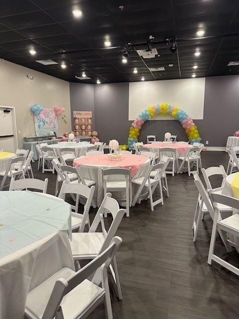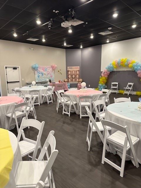 Welcome to The Cove Event Space! The Cove represents a community gathering space where everyone is welcome. Families can celebrate, organizations can meet, and various events can be held. The Cove is a space that can accommodate up to 100 guests with additional decorative, audio/ visual, and configuration options to make any event a success!