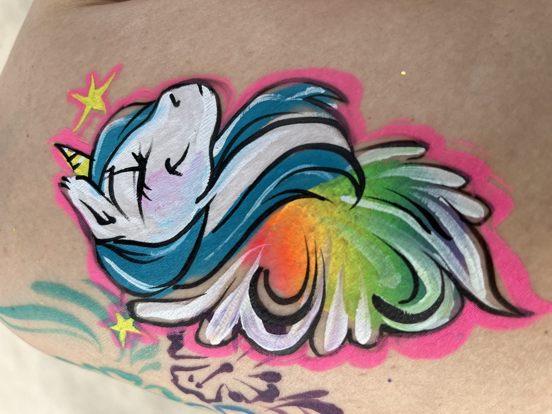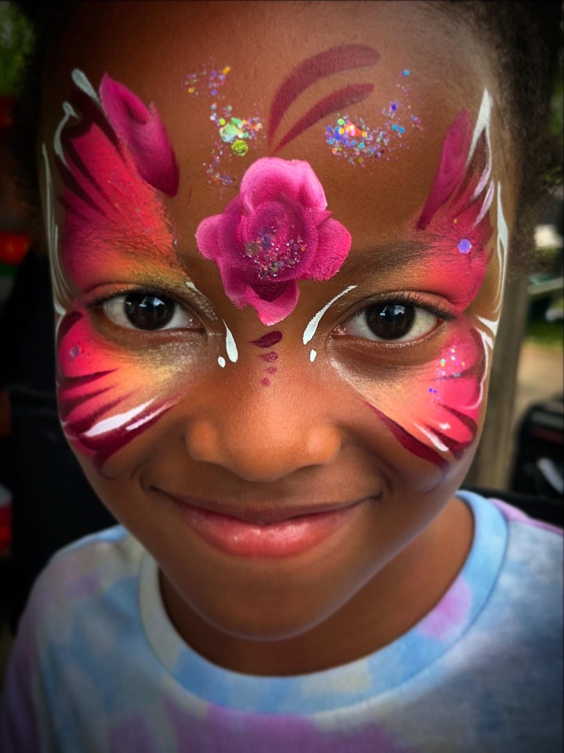 Vibrant, detailed face painting with bold colors, clean lines, and fun designs — bringing smiles to all ages with safe, professional paint