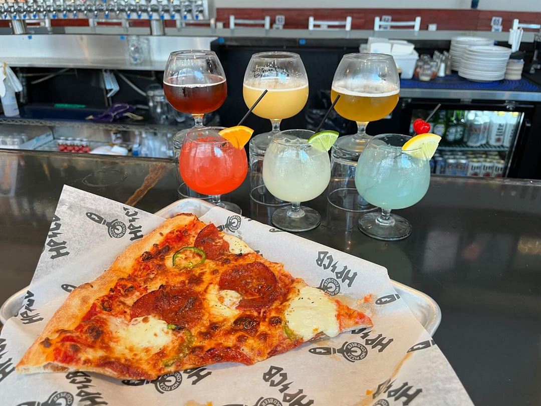 Serving Hot Pizza and Cold Beer We have also have a selection of sandwiches, salads and house cocktails.