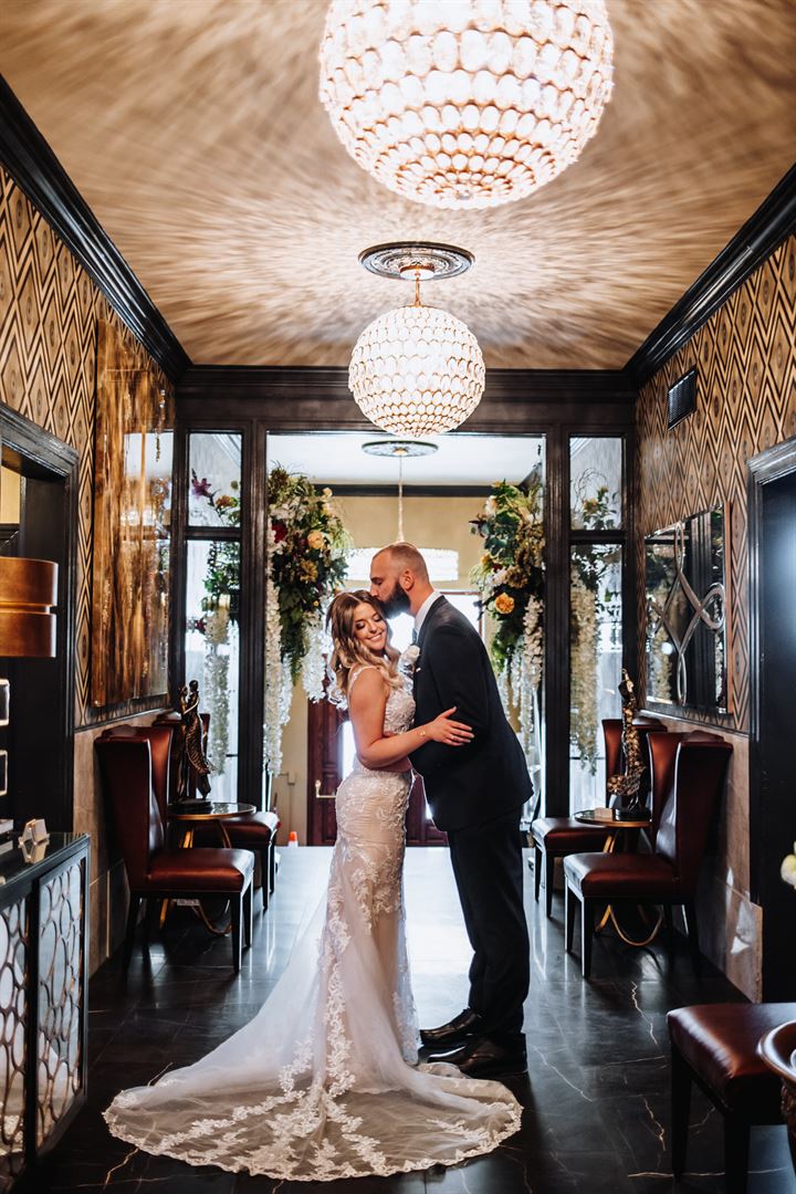 The Grand Ballroom is approximately 3500 square feet with 24' high ceilings. Maximum seated capacity is 240 persons, 400 for a cocktail event. Amenities include a large wrap-around mezzanine with cocktail and lounge seating, an outdoor patio with a gorgeous gazebo and fire pit and a gorgeous, modern bar. We are located in the vibrant Central West End near hotels and other nightlife.