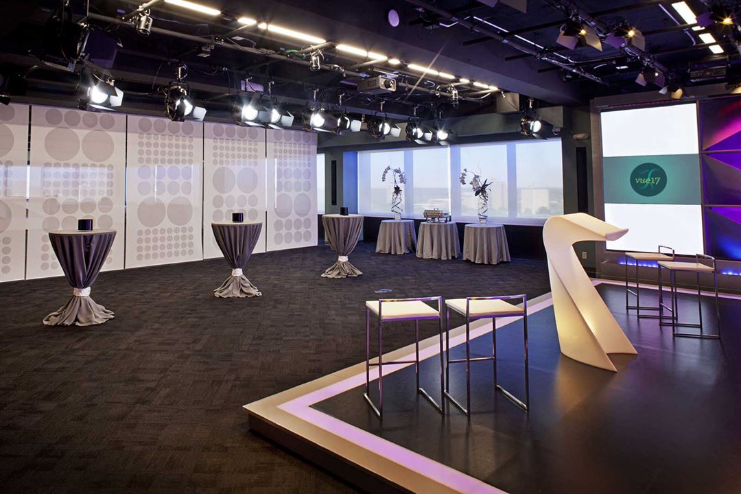 Whether you need a space to celebrate an anniversary, prom, sorority or fraternity event, family reunion, class reunion, birthday, graduation party, bar or bat mitzvah, baby shower, bridal shower or celebration of life recognition event, Vue 17 is truly a special space. Recognized as one of the top venues in the St. Louis area, your family and friends will appreciate the uniqueness and clear panoramic view of downtown St. Louis City, our clean sound system, large elevated stage, customizable color scheme, and professional lighting.