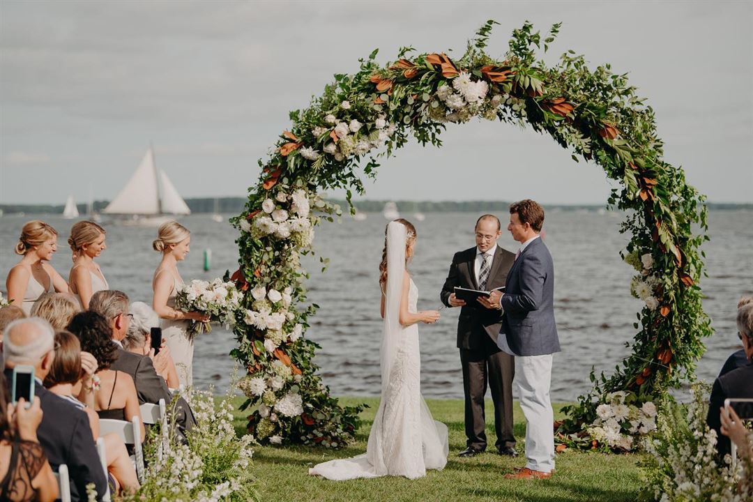 Inn at Perry Cabin is a waterfront wedding venue located in St. Michaels, MD. Nestled on Maryland’s Eastern Shore, this elegant manor boasts scenic views and an old-world appeal. Defined by its Colonial-inspired architecture, the property evokes a vintage charm that will surely impress your guests. The glistening waters and immaculate gardens inspire a sense of calm, suitable for couples who desire a tranquil occasion. Boasting a variety of event spaces, guest rooms, and dining options, this delightful getaway can set the scene for your perfect celebration.
