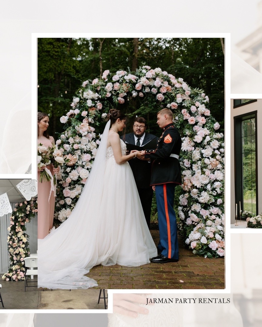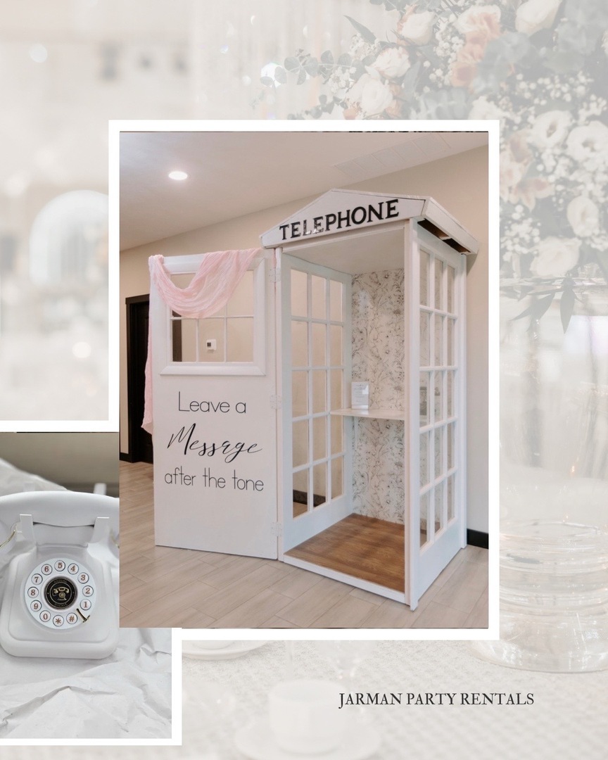 Our phone booth has a working door and real glass panels to reduce noise. We deliver all items but also set up and tear down the arch and phone booth. The arch can be used indoors or outdoors. Our candles come with batteries and a remote.