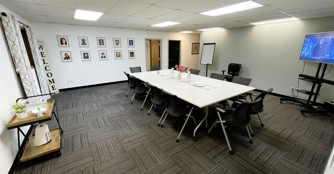 A flexible, premium meeting space with breakout rooms! One main room (455 sq. ft.) with three breakout rooms. In addition to meetings, our space can also host small celebrations such as birthday parties.