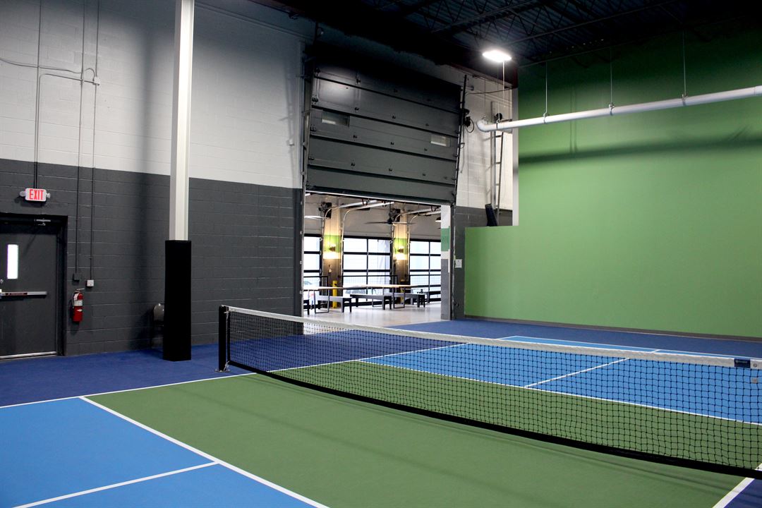 The club has 4 state of the art Pickleball Courts with private access to a beautiful, heated porch. Large garage doors with natural light can open to the outdoors and 2 outdoor pickleball courts in the summer.