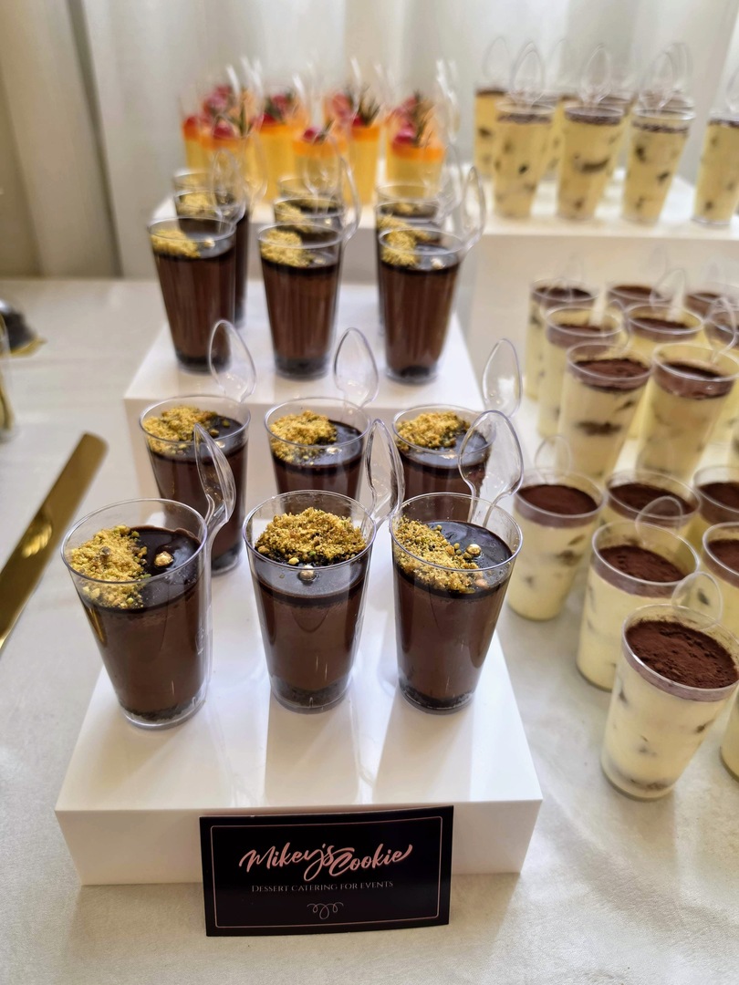 Mikey's Cookie is a licensed dessert catering business based in Salem, NH, known for our signature mini dessert cup displays and elegant plated desserts — a modern, eye-catching alternative to traditional event sweets. Our mini dessert cups are a crowd favorite at wedding receptions, corporate dinners, holiday parties, showers, and milestone celebrations, creating beautiful dessert table moments that guests remember. Each cup is handcrafted to order, fully customizable by flavor and presentation, and designed to impress without the hassle of cutting or serving. We also offer artisan cookies and custom cookie gift boxes — perfect as wedding favors, corporate gifts, or a sweet addition to any dessert spread. Every item is made fresh in small batches at a licensed commercial kitchen in Salem, NH. We serve Southern New Hampshire and Greater Boston, including the Merrimack Valley. Sugar-free and gluten-free options available. Inquiries answered usually within the hour.