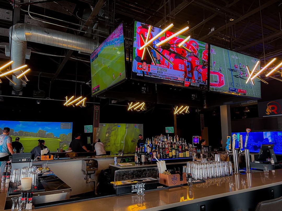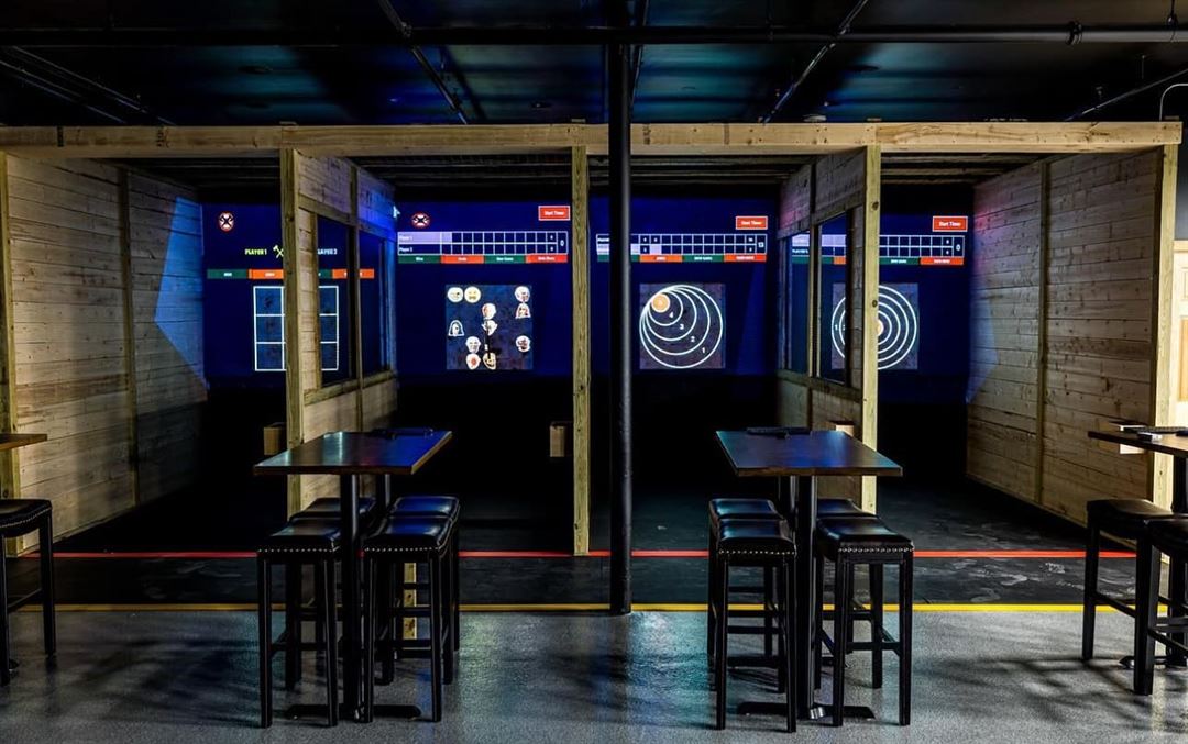 Par28 featuring Rae’s Coal Fired Pizza offers a full-service restaurant and 34 seated bar displaying 6 large TV’s, indoor golf equipped with innovative technology for any level of golfer, and state of the art axe throwing lanes with projected targets. A fun place with great food to bring friends and family!
