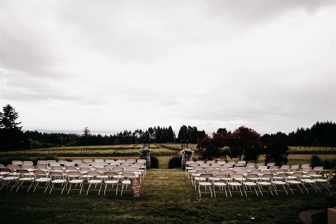 We have a beautiful wedding venue that overlooks our estate vineyards, with views of the valley, Mt Hood and Mt Jefferson. Estate home is open exclusively for the wedding party to use prior to the ceremony. Our outdoor reception area can seat up to 200 guests, with dance floor, palm trees, You may bring in your own catering for your event.