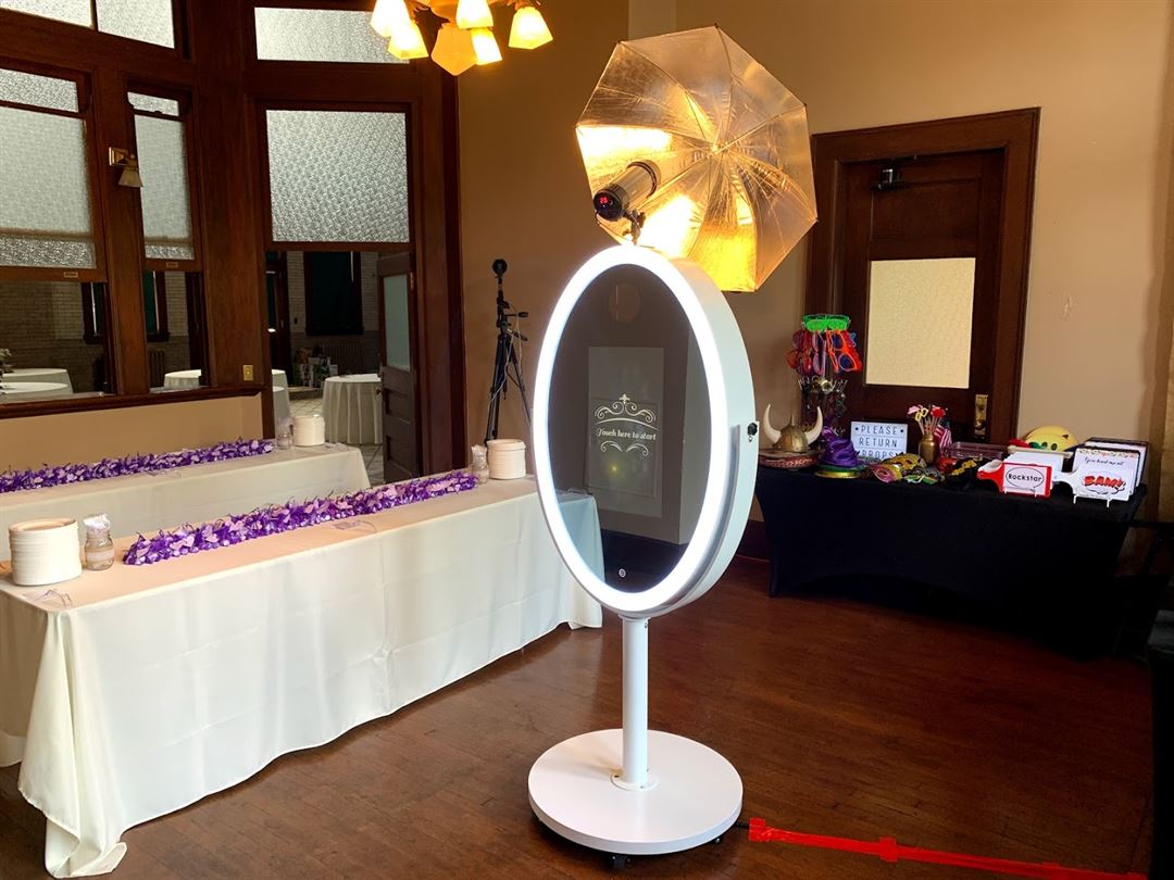 Have you considered a photo booth for your event? Our Oval Vanity Mirror is a super fun but elegant photo booth experience that provides not only fun but lasting memories for you and you guests! We specialize in weddings, corporate events, formals, school events like proms, fundraisers, and parties.