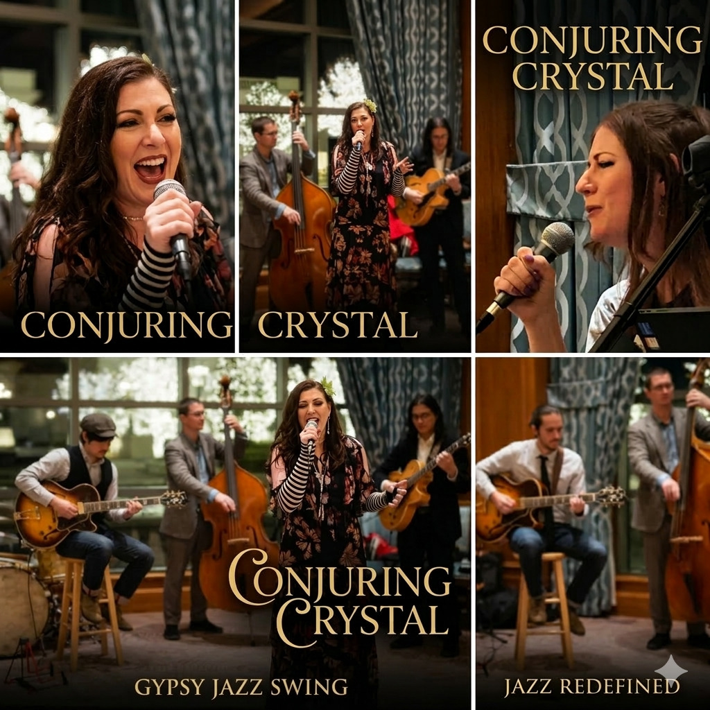 Conjuring Crystal is a Jazz band that performs Gypsy Jazz, Trad Jazz, and Swing.