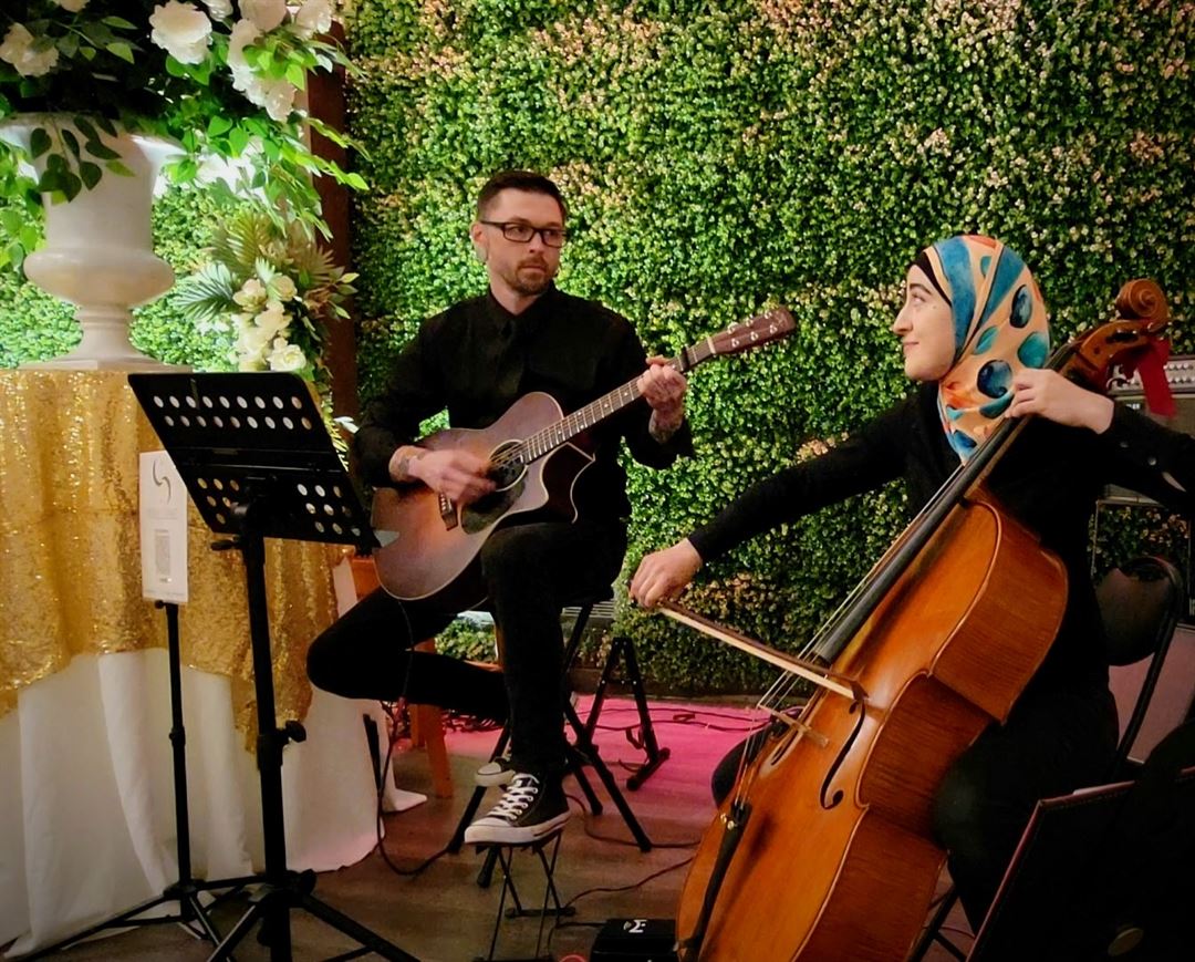 Introducing a dynamic and versatile acoustic duo that brings a unique twist to your favorite tunes! Our guitar and cello duo combines the warmth of classical strings with the soulful strumming of an acoustic guitar. From popular hit songs to reimagined metal classics, our performances are a harmonious fusion of melody and rhythm. Prepare to be enchanted by the captivating interplay between the guitar and cello, as we deliver a musical experience that transcends genres and leaves a lasting impression on your ears and heart. Whether you're looking for mellow melodies or headbanging acoustic renditions, our duo has it all, ensuring a memorable and diverse musical journey for your audience.