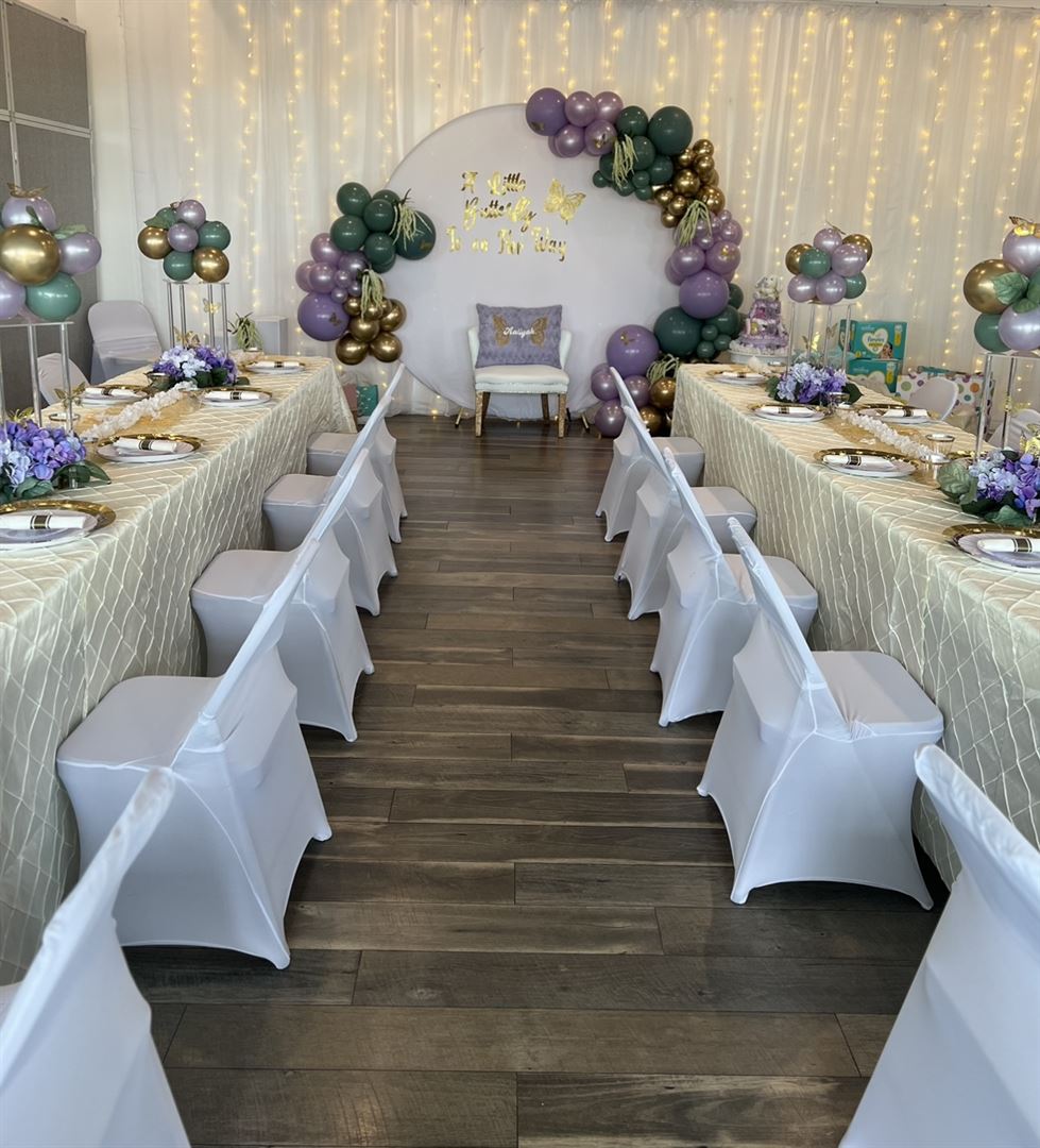 The venue was a beautiful size for my baby shower we were able to fit 10 tables 8 for sitting two for food wish I would have gotten more time but it was perfect