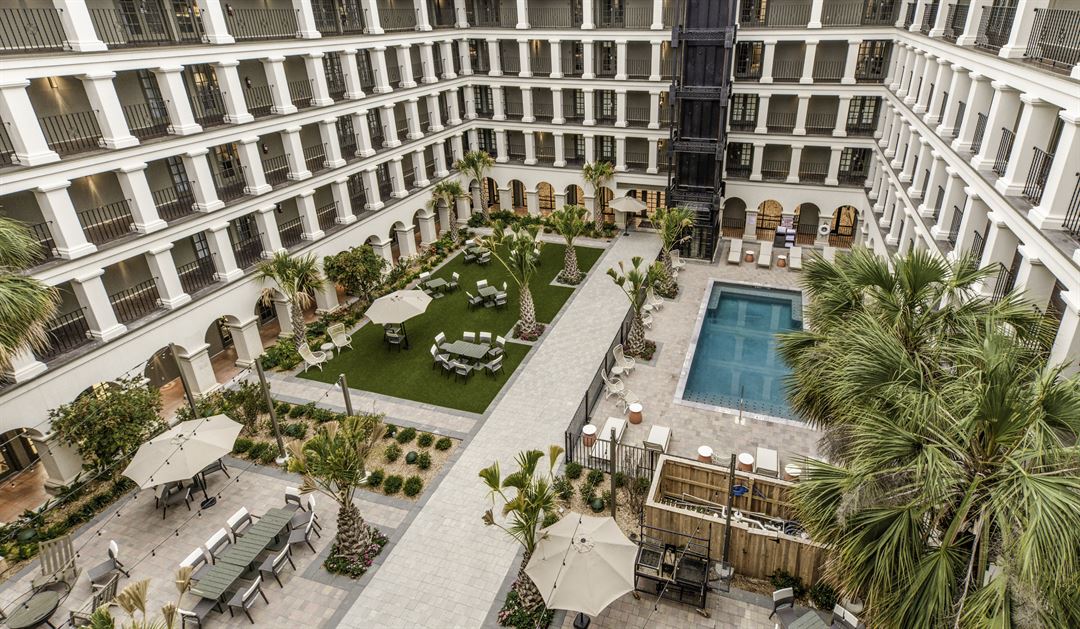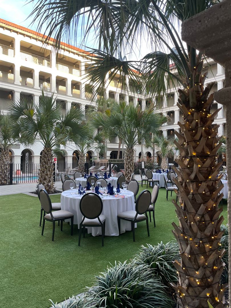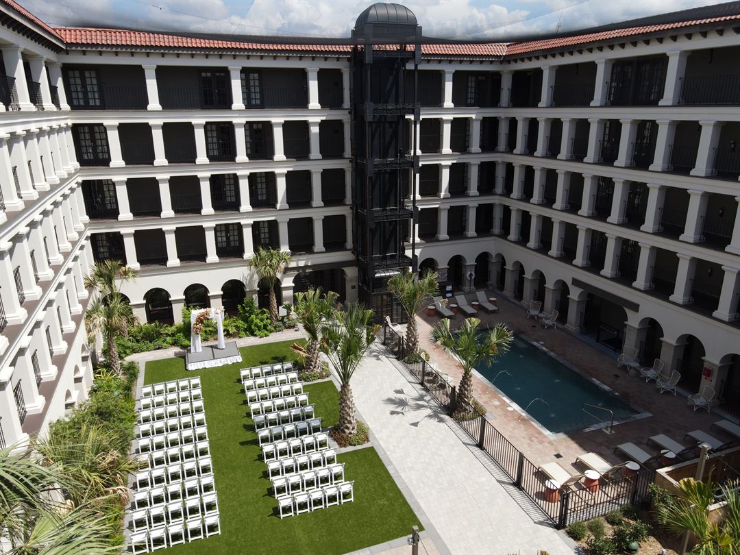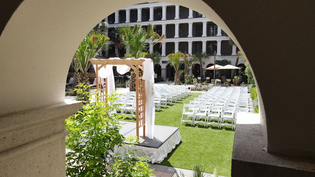 The grand courtyard, so vital to traditional Spanish architecture, is the crown jewel of the Estancia del Norte, an Edenesque setting for serenity, for ceremony and most importantly, for celebration. In this oasis, all five senses are engaged and ignited. Five stories of arched columns with signature ironwork. The soothing sounds from a bubbling fountain. Lush greenery bursting with tropical pops of color. Aromas from orange trees and an open-air restaurant, and the cool feel of terracotta and Saltillo tile underfoot. Even the weather appears more temperature in this protected microclimate, where the bustling activity outside these calls can no longer be seen or heard.