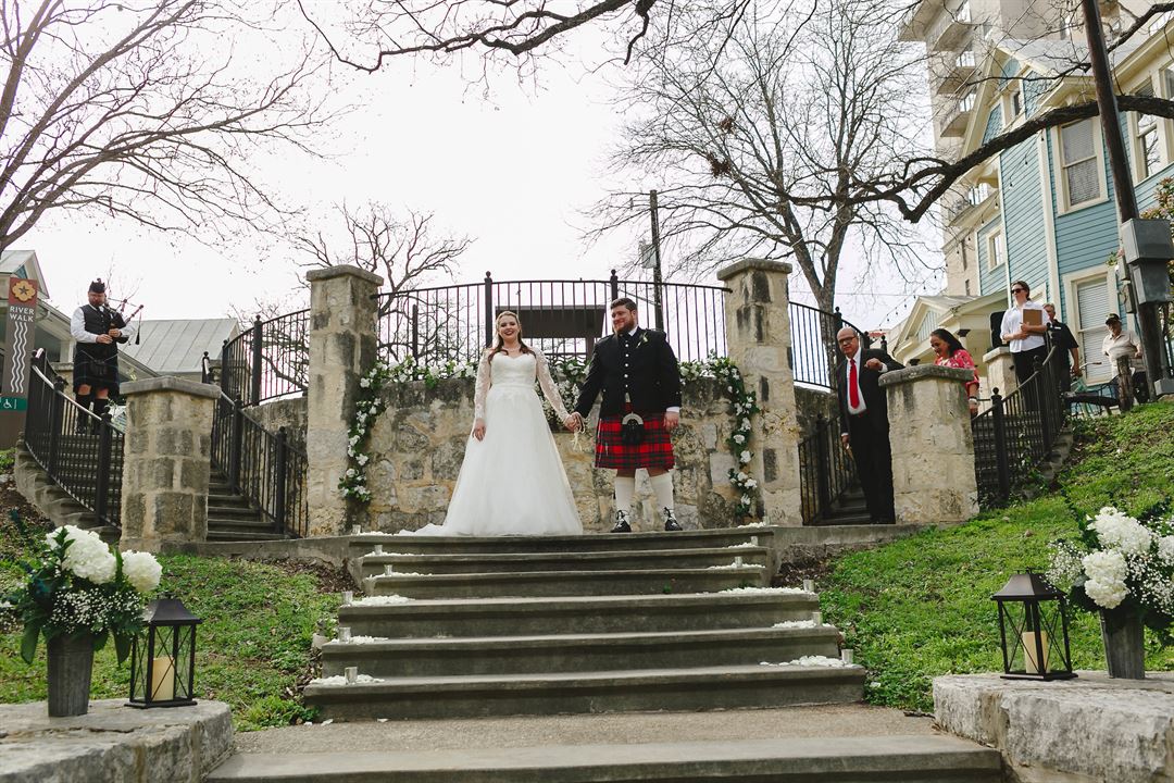 Couples can invite up to 50 guests to join their wedding celebration at the Inn on the Riverwalk. This inn actually consists of three early 19th-century homes brought together as one venue. The baby blue siding offers a charming and conversational touch to the facades of these structures. This exclusive venue offers wedding ceremonies and receptions right on the scenic San Antonio Riverwalk. Ceremonies can be held on the banks of the river with a stone wall featuring a metal railing as the backdrop. Receptions can take place on the venue’s homey deck space, or within the walls of one of the three homes. These indoor rooms offer French doors, hardwood floors and elegant details such as tray ceilings to make a couple’s event space stand out.