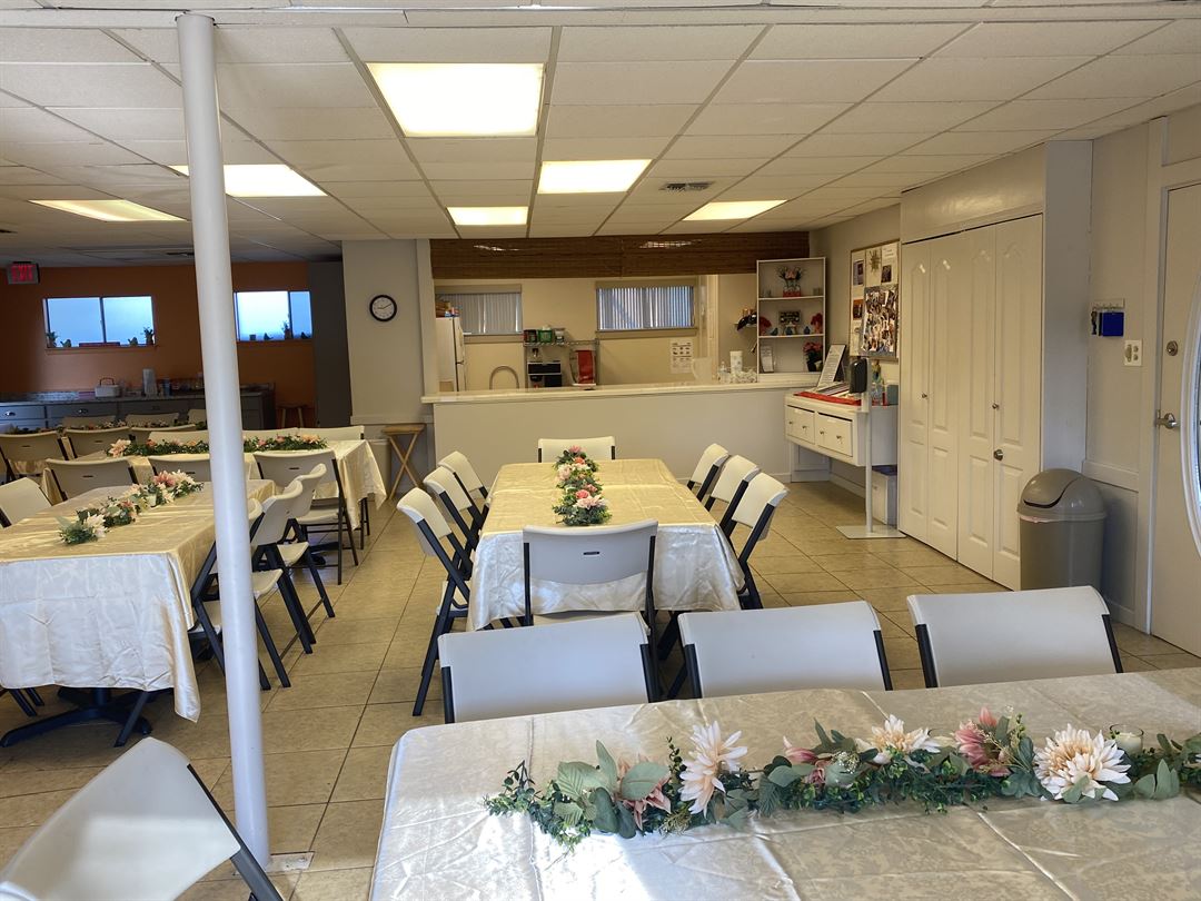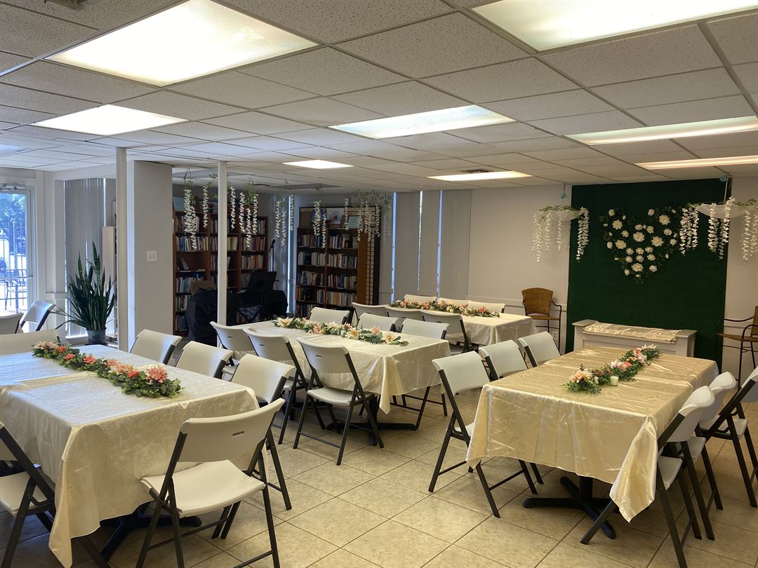 Facilities for food preparation are limited, but the renting group may bring in food and refreshments or have food catered. The center seats 40 people (depending on how tightly the seats are arranged) and the sanctuary is available for groups of up to 150.