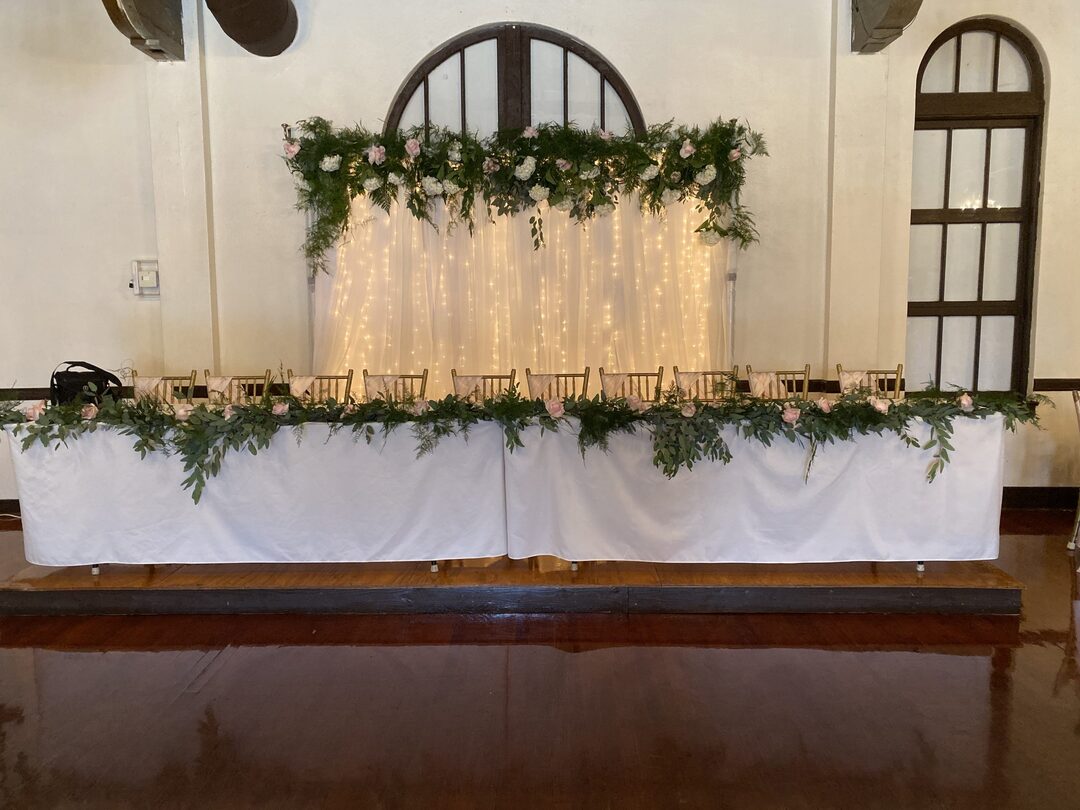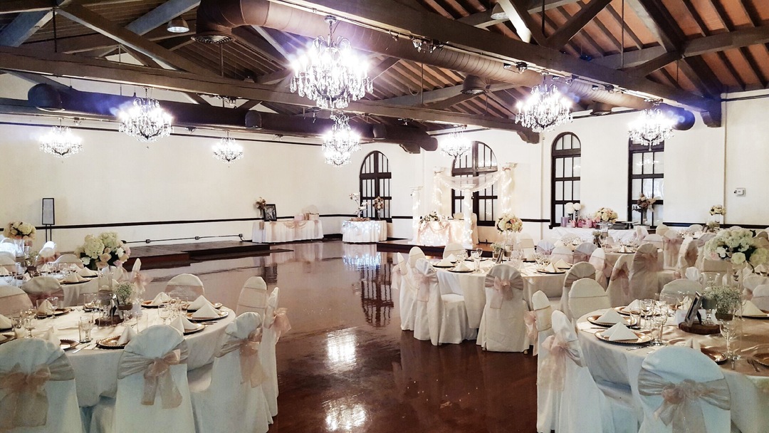 Features all the quintessential Spanish architectural details – an impressive wood-beam ceiling and windows with arcaded silhouettes and 9 beautiful chandeliers – for a stunning ambiance. This hall comfortably accommodates 250 guests.