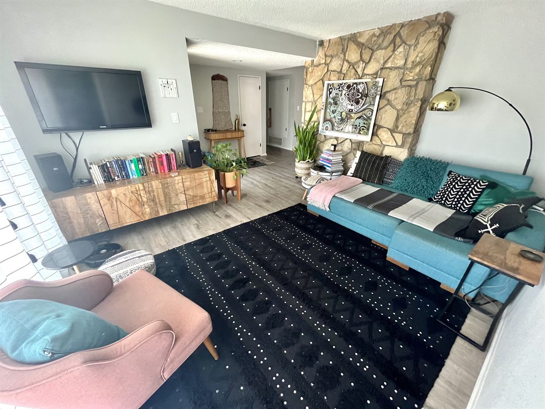 This colorful, modern home at the foot of the mountains provides a comfort setting for parties, dinners, and celebrations.