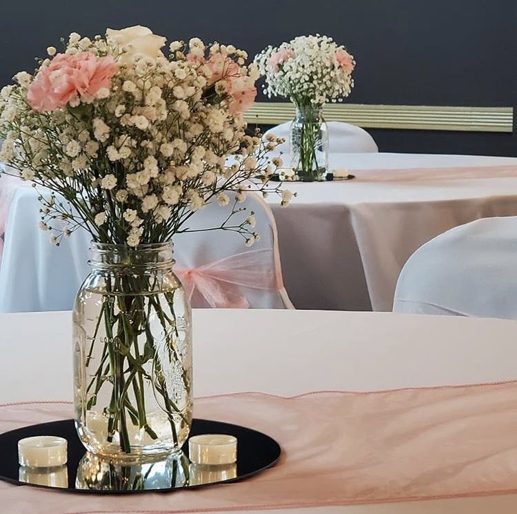 With its spacious layout and ample natural light, it offers flexible settings to accommodate your guests. Additionally, the dark brown walls adorned with elegant Tiffany-style sconces and mahogany doors create an intimate setting, making it ideal for daytime events.