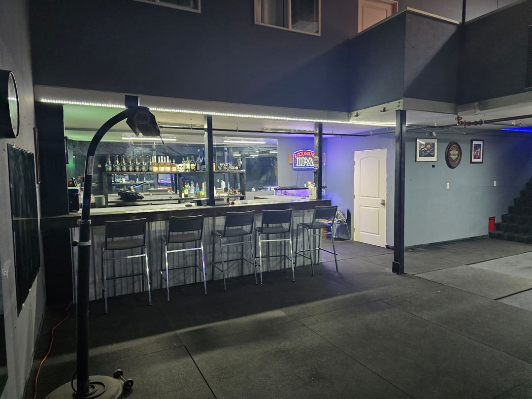 Within the event space, there are lounge areas, a bar, a fridge, dance area, 2 bathrooms, and a basic kitchen sink for cleanup.