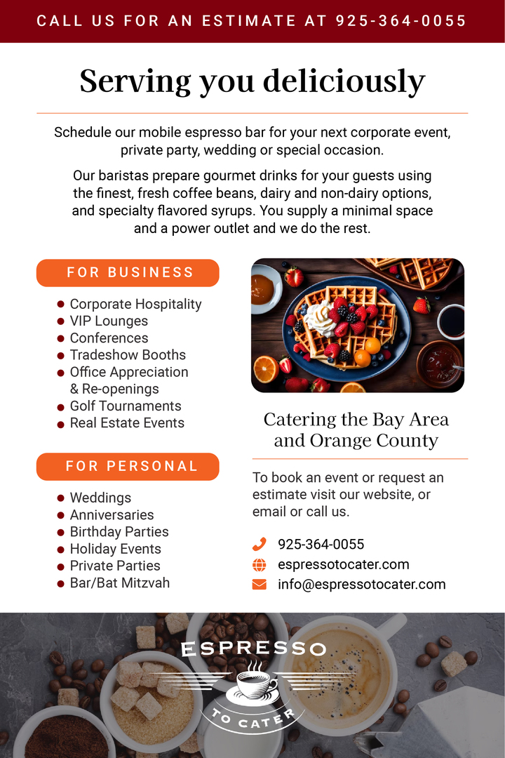 Full service professional barista bar. Our unlimited drink menu includes the following: