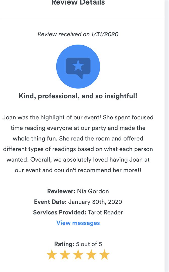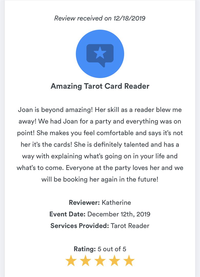 Special Features: Reading many people in a short time is a skill that we have honed through experience and skill. We love what we do and we love making guests leave their readings feeling uplifted!