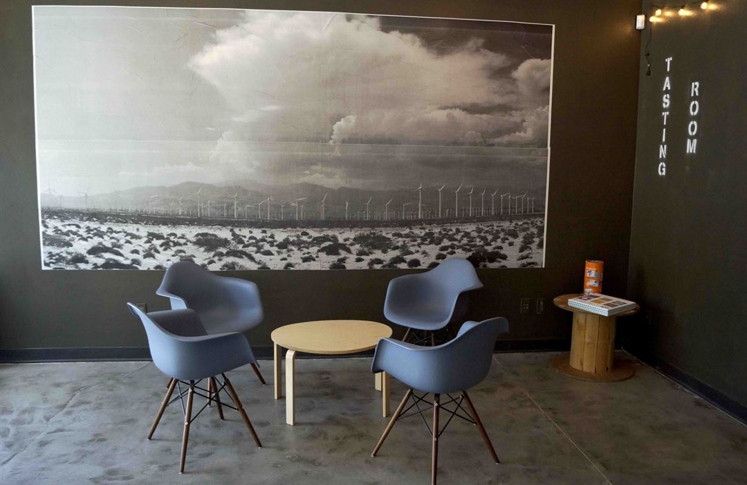 The Tasting Room at Guthrie CiderWorks shares a space with our working cidery, which produces small-batch, dry, craft ciders that are distributed throughout Southern California. The Tasting Room looks into our production facility with its bright, stainless steel tanks. The Tasting Room has two bars, barrel tables with seating and a canyon view. The Lounge is a separate room adjacent to the tasting room. It has informal seating and is used in conjunction with the Tasting Room.