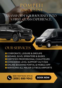 Pompeii Limousine - is a Black Car Service, Airport Car Service Airport Transportation and luxury car service in San Diego. We provide the Top Notch service that every client is looking for and we always look forward to serving you.