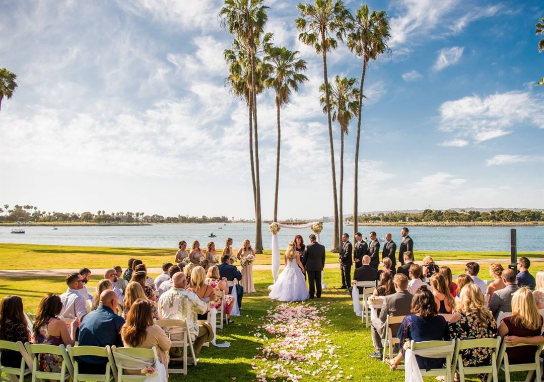 The Dana on Mission Bay has three picturesque waterfront wedding locations with breathtaking views, making us one of the most beautiful and highly recommended wedding locations in San Diego. Host your wedding ceremony outside on Mission Bay, followed by an elegant reception in our spectacular ballroom with 18-foot high glass walls overlooking the water. Or say, "I do" in our lovely new Marina Garden followed by a spectacular outdoor reception. The Dana on Mission Bay is, without doubt, one of the most dazzling wedding venues in all of Southern California.