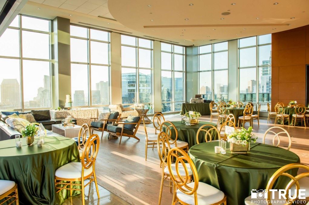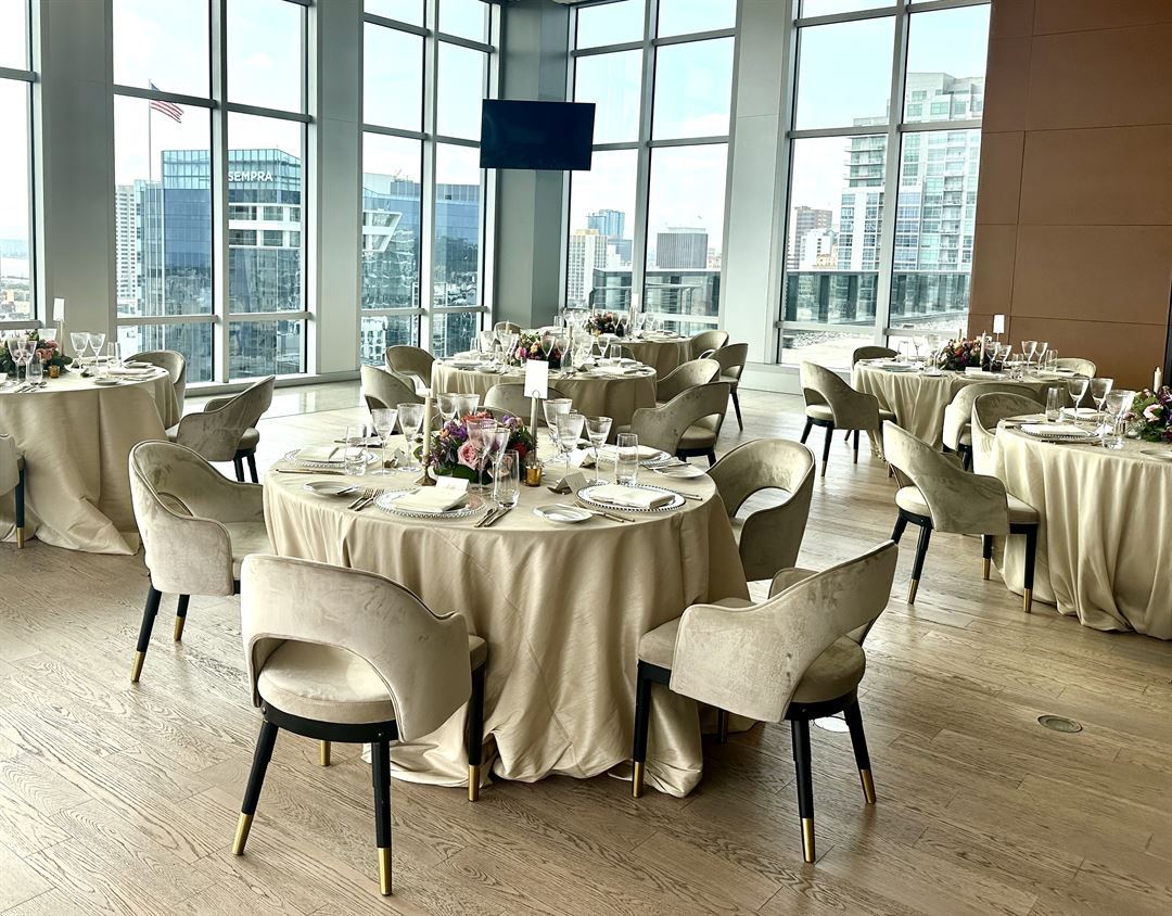 Located on the top floor of DiamondView East Village, The Skybox is a venue for amazing and unforgettable events. Whether you are planning an exquisite wedding, corporate meeting, client appreciation dinner, non-profit fundraiser, birthday party, rehearsal dinner, pre-game party, reunion, bat or bar mitzvah or just getting 220 friends together for a Padres game. This venue is the place to be and experience! With breathtaking views of the San Diego Skyline, San Diego Bay and Coronado, as well as direct views into Petco Park, The Skybox is downtown’s ultimate venue location.