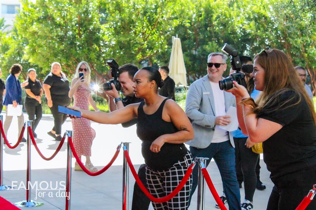 Famous for a Day is the nation’s number-one source for hiring your paparazzi. You can rent any number of our professional reporters and autograph hounds to follow you or an admired friend around for the day for an unforgettable celebrity experience. Feel the fame, and leave it all behind at the end of the day! Imagine basking in the glow of Hollywood cameras and city lights with your friends for a night. Imagine you’re dressed in your best threads walking down the red carpet as light bulbs flash. Imagine everyone shouting your name, asking questions, clamoring for photos and autographs. We have two types of experiences, a Paparazzi Experience and a Red Carpet Experience! For the Paparazzi Experience, we will show up at your location (usually entering/exiting a location) and we will ambush you with photos and camera flash. We want passersby to want to get in on the action of seeing a real CELEBRITY! YOU! Our actors will shout questions and try to "get the best photo'! For the Red Carpet Experience, we will take photos of you and your guests as they do a "step and repeat" down a red carpet (provided by you)! We will ask questions just like a normal red-carpet reporter will ask and we will want you to POSE!