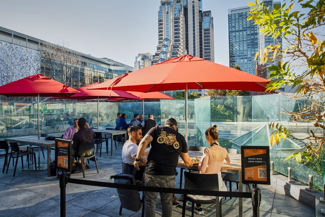 Located South of Market atop the Moscone Center on the Yerba Buena roof terrace. Artistic design with floor to ceiling glass, our doors open to panoramic views of the downtown San Francisco and the skyline and Yerba Buena gardens.