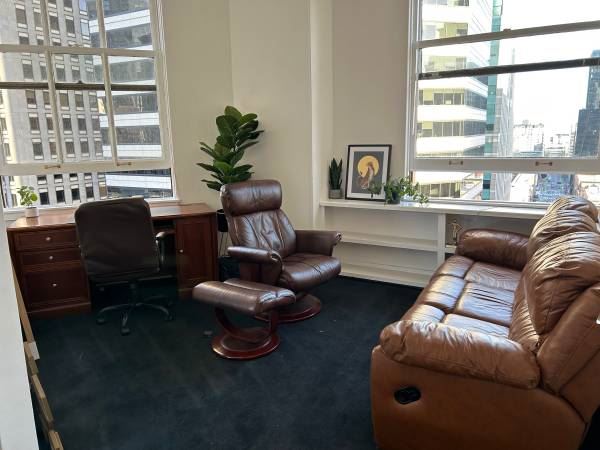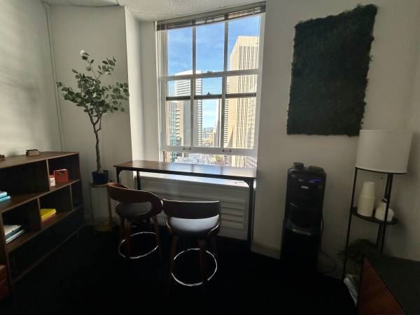 Located on the 14th floor of the Hobart building on Market and 2nd St. is a furnished 444 sq.ft. corner office suite. Enjoy a spacious, comfortable, and professional space to work, meet clients in person or virtually, host groups, offsite meetings, get-togethers, networking events, or cocktail parties.