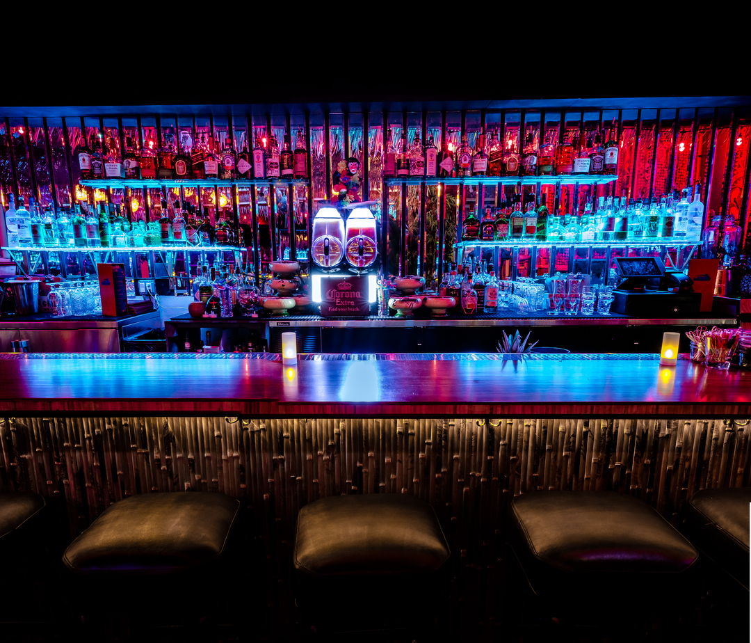 The Bar is perfect for happy hours, private parties, photo/film shoots, and/or intimate live performances. The whole space is fully available during the week (both Day and night) and during the day on weekends. We have a full lava rock wall with a giant vintage 1950s Tiki Head, the rest of the space is covered in bamboo & matting on the walls and thatch roofing over the bar and booth area.