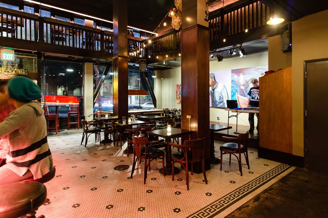 Our upstairs mezzanine provides a welcoming escape for private conversations, and a wrap-around bar with full-window views of the bustling streets provide the setting for crowds of all ages and walks of life. From partnering with local pop-up kitchens to a rotating monthly art show exhibiting original work by local artists on the walls, the space embodies the voice of the creative spirit of our unique patrons, and will provide a wonderfully unique setting for your upcoming event. Let's talk about your party.