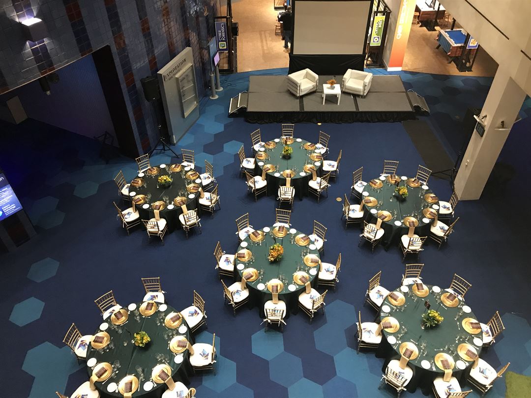 Events are held in The Interactive lobby, exhibit galleries, IMAX Dome Theater and rooftop terrace, which features stunning views of downtown landmarks. You can reserve a combination of spaces or all of The Interactive. The Interactive is a fantastic place for a large party: Three-levels can accommodate up to 2,500 guests on a large, adaptable floor plan, which includes a 45-foot cylindrical tower that anchors an art installation celebrating Silicon Valley.