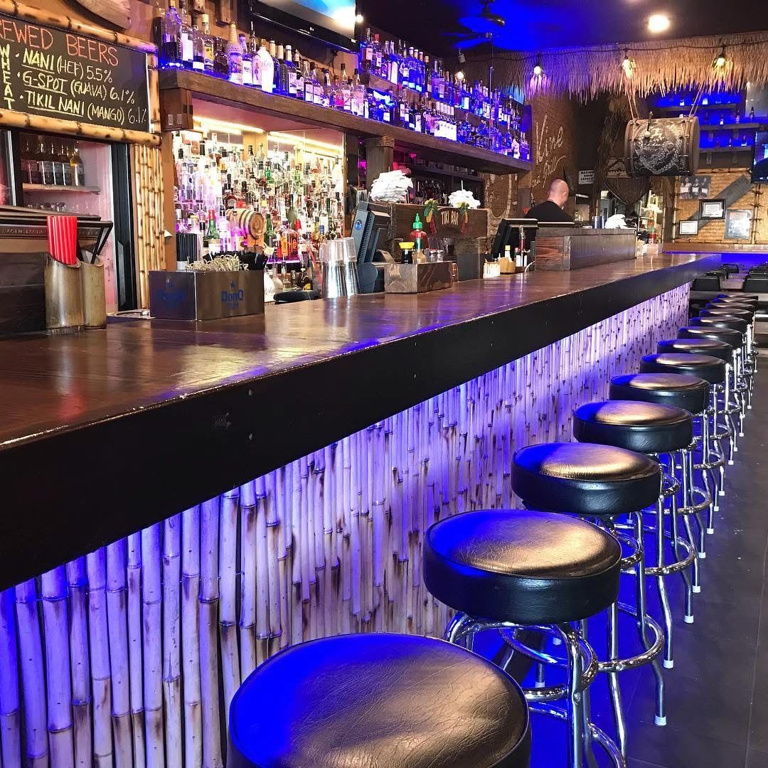 The venue showcases an elevated stage, premium sounds and lighting, lounge seatings, and large screen TVs throughout the venue. The full bar serves an enticing selection of tropical cocktails, premium spirits, and craft beverages, enhancing the island vibe.