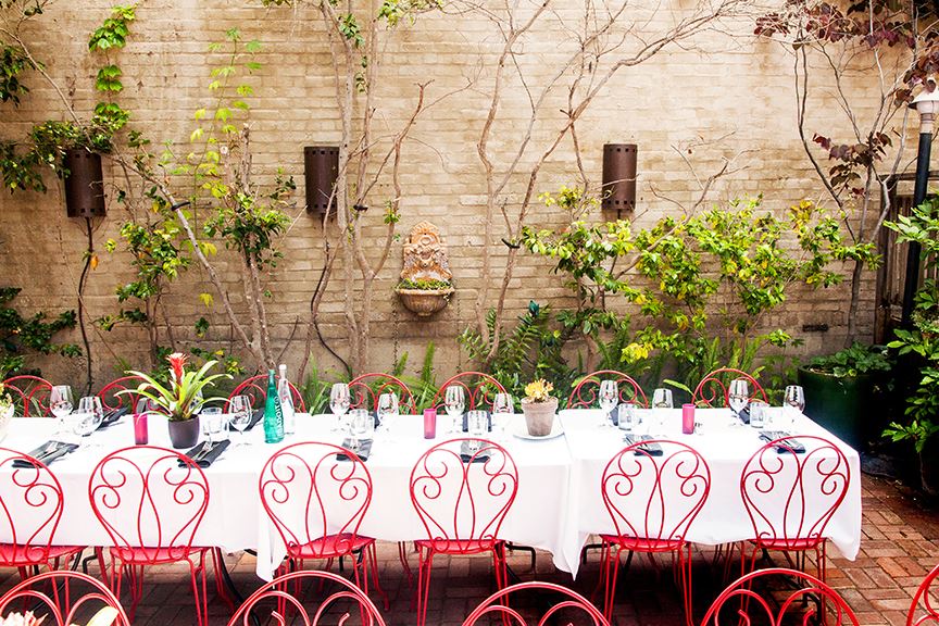The beautiful open-air patios nestled along the creekside are what Novo is truly known for. The colorful Latin Patio enjoys bridge views and is filled with lights and antique bird cages, while the intimate Garden Brick Patio offers a lovely ambiance with its climbing vines and lush greenery. The expansive Grappolo Patio, complete with lamps and beautiful views of the creek, is a favorite pick for ceremonies and receptions.
