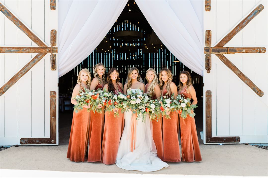 The Rustic Barn Doors' simplicity and elegance provide a timeless backdrop for your ceremony. The large barn doors are symbolic to stand in front of while reciting your vows. Guests will be seated on the groomed grass, while you and your wedding party float down the decomposed granite aisle. This location can seat up to 500 guests.