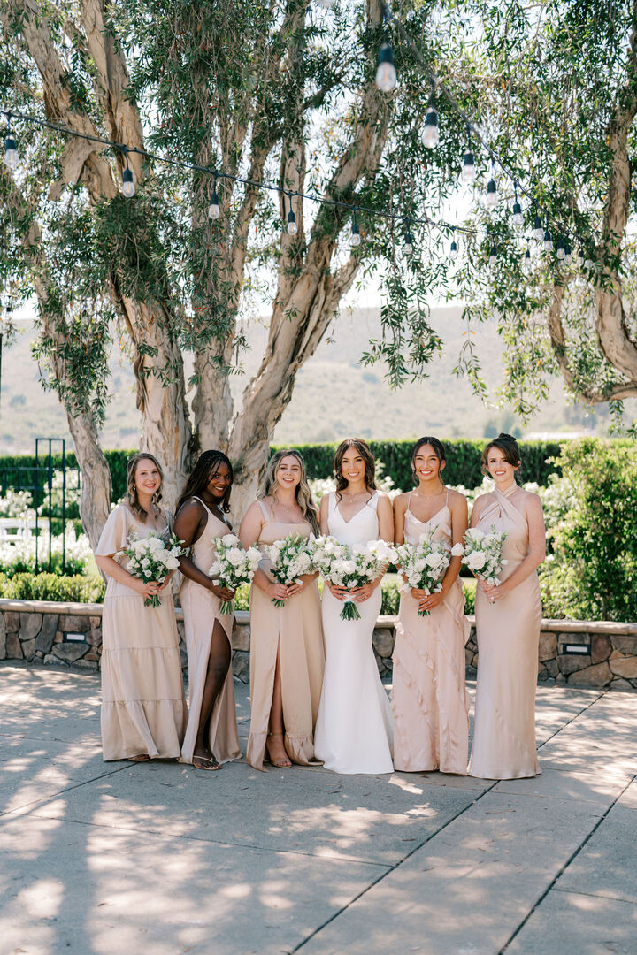 When you arrive at Twin Oaks, the California Craftsman-style clubhouse entrance offers ample space for cocktail hour or check-in tables. Inside, explore the spacious Garden Ballroom with bright white beamed ceilings and large picture windows that offer a fresh mission bungalow design with panoramic views. Step outside and the Garden Terrace provides room under the sky for ceremonies, receptions, and luncheons, complete with a large stone fireplace, gardens, and string market lighting.