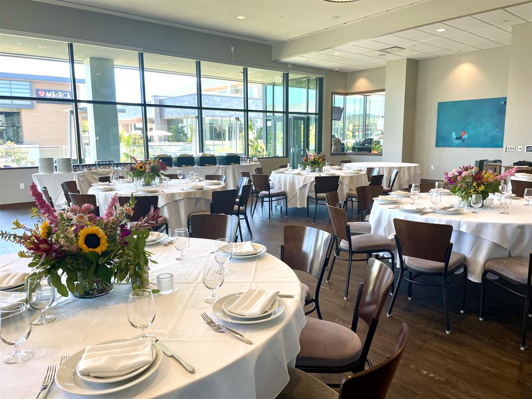 We feature 2 floors with over 35,000 square feet, a grand ballroom that can accommodate up to 250 guests for dining, smaller ballrooms for groups of up to 130 guests and an outdoor patio perfect for entertaining up to 75 guests for a seated dinner or cocktail reception.